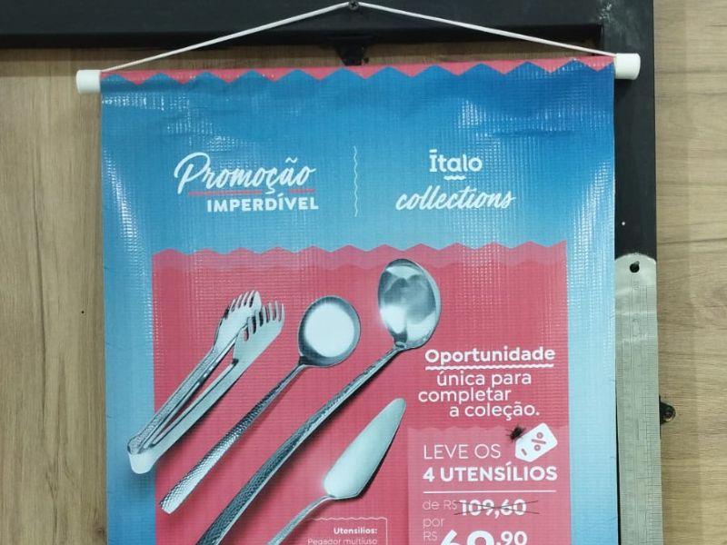 Materiais suspensos que atraem a atenção do cliente no ponto de venda, perfeitos para destacar lançamentos e promoções.